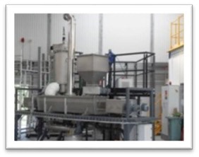 4. Solid phase coming out from SPJ pyrolyzing chamber is quickly cooled down into a flash cooler based on a double jacketed auger cooling screw mounted with water spraying device. Biochar is then cooled down to a temperature which should not exceed 50°C. The w/w ratio of waste converted into biochar depends in biomass composition and operating conditions