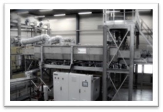 2. A high temperature rotary valve or dosing screw introduces the dry crumb into the pyrolyzing chamber. This chamber is based on SPIRAJOULE® technology, an exclusive and patented electrical heating screw conveyor. This process allows perfect monitoring and control of dwell time and temperature during the process. Temperature can be adjusted precisely up to 800°C depending on specifications required. Dwell time of the solid phase can be adjusted from 5 to 30 min. Adjustment of operating conditions defines the ratio of TP oil, biochar and gas produced with the process.