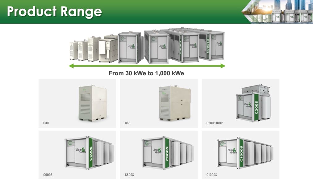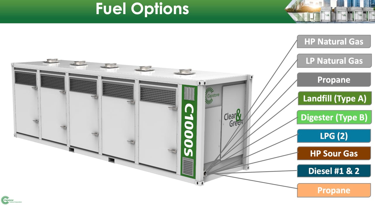 One C1000 unit with 600kW of capacity but capable to expanding to 1000 kW will be purchased and installed to generate the required energy fuelled by the oil and gas , LPG, Hydrogen.