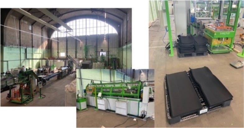 rubber granulate. It is only about temperature, pressure and mechanical manipulation of the