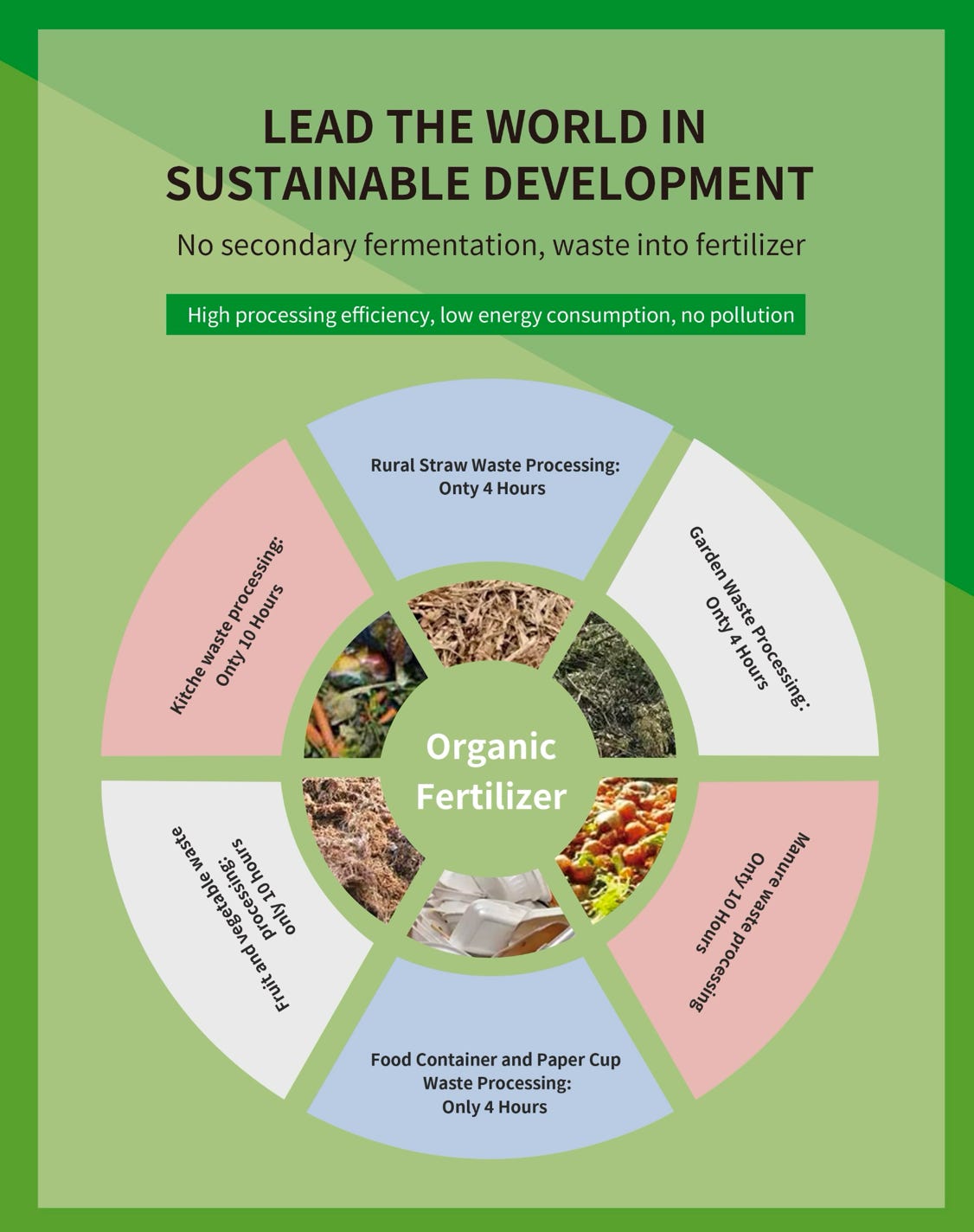 We have been working with our Partner, Jupower, a world leader in RCS (Rapid Composting System) using High-Temperature aerobic fermentation to decompose and ferment organic waste at a rate ten times faster than traditional compost, and finally converts it into high-quality organic matter, which has the characteristics of high reduction rate, low odour, and local treatment. At the same time, the production of organic matter has certain economic valve and can be used as base of organic fertiliser, soil conditioner, biomass fuel and other products.